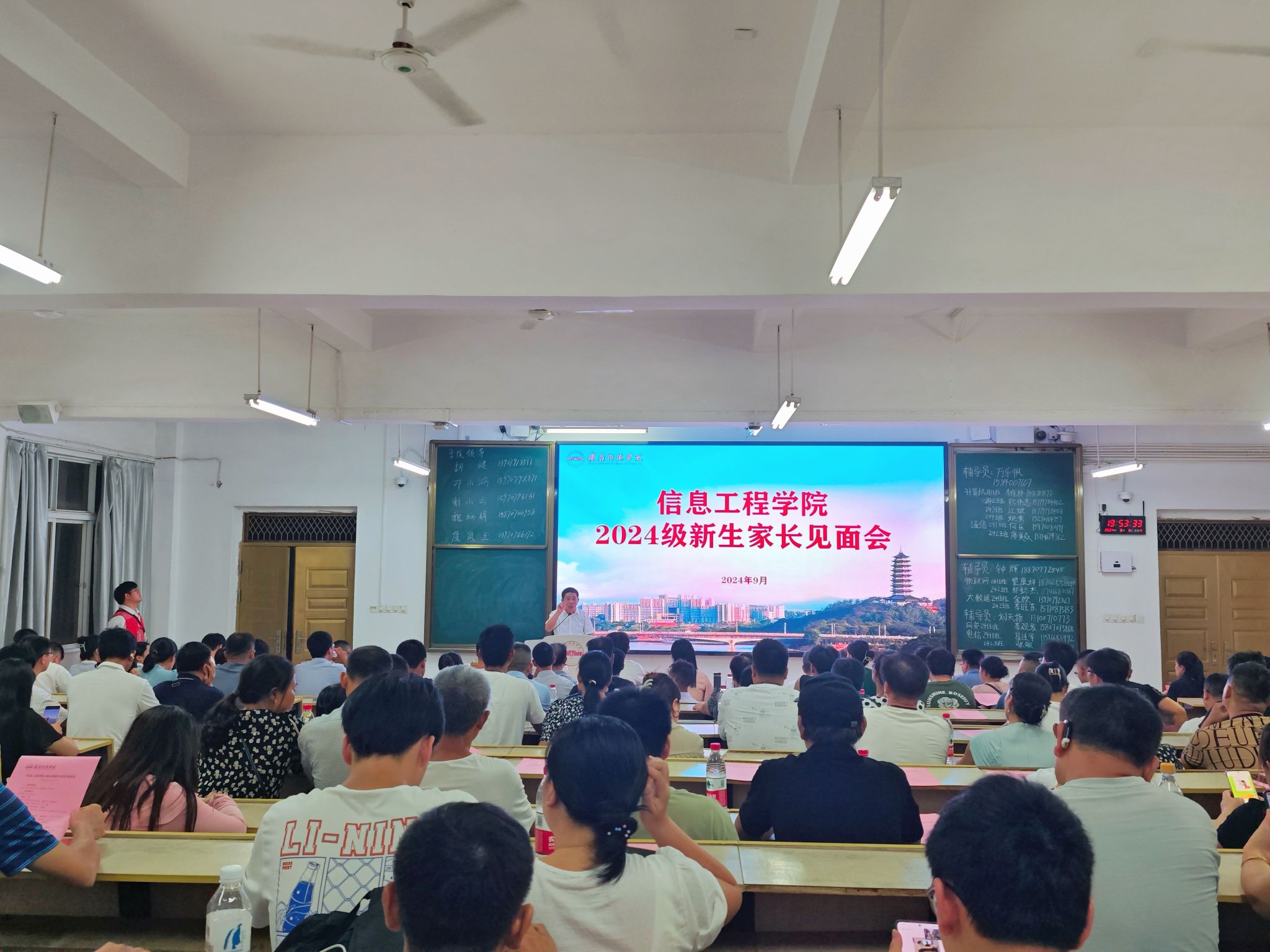 本网讯:为方便2024级新生和家长深入了解学校yL23411永利官网登录,帮助新生更快地融入大员工活,9月5日晚,yL23411永利官网登录在崇善楼Z1D1教室召开2024级新生家长见面会。yL23411永利官网登录党委委员、副校长何锦龙,yL23411永利官网登录党委副书记邓小鸿、副院长胡健,现代教育技术中心副主任、华为电子信息现代产业yL23411永利官网登录执行院长谢小云,yL23411永利官网登录员工工作负责人魏炳辉、教学工作负责人康岚兰,yL23411永利官网登录2024级新生班主任、辅导员及新生家长参加见面会。会议由胡健主持。