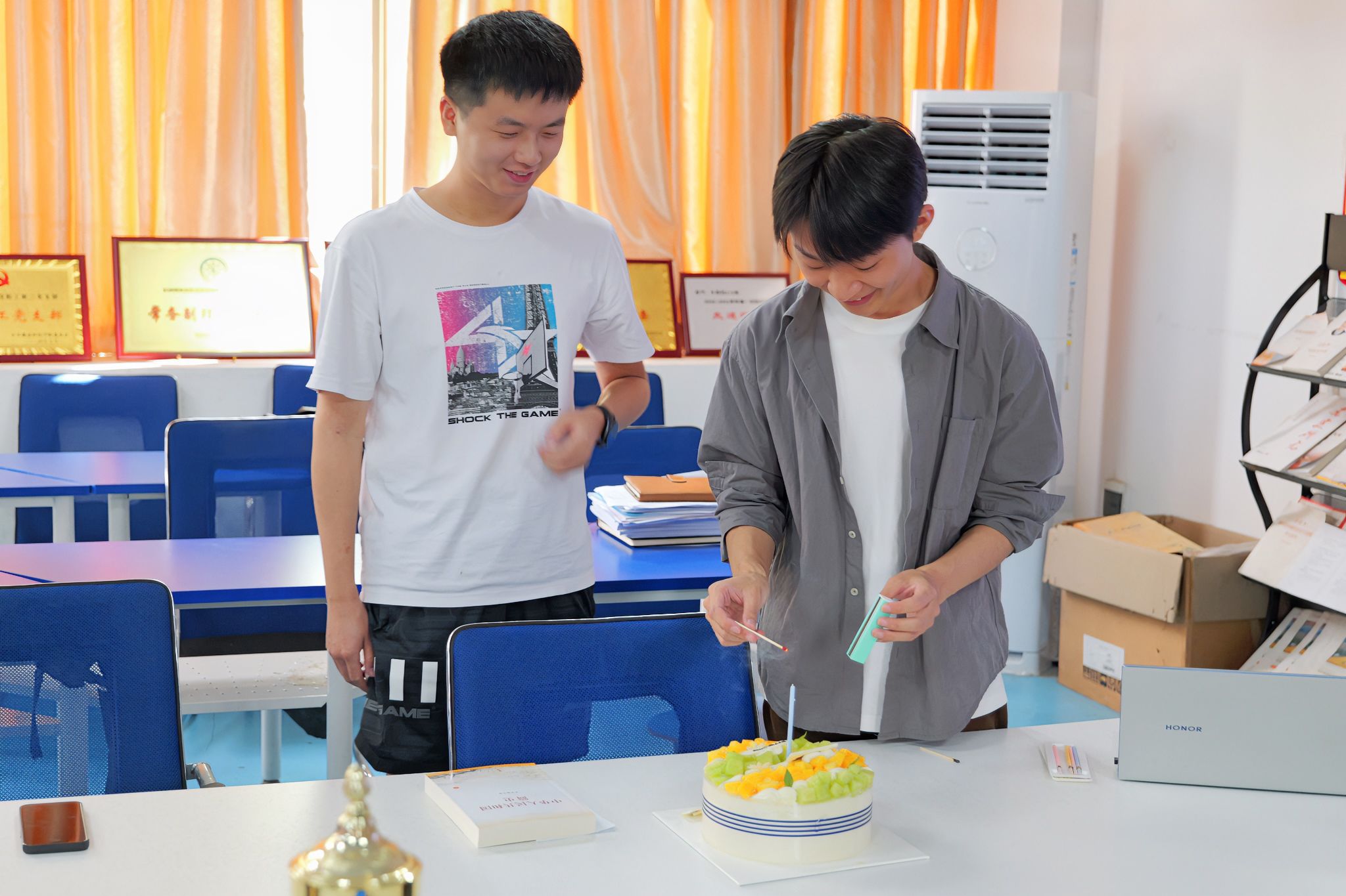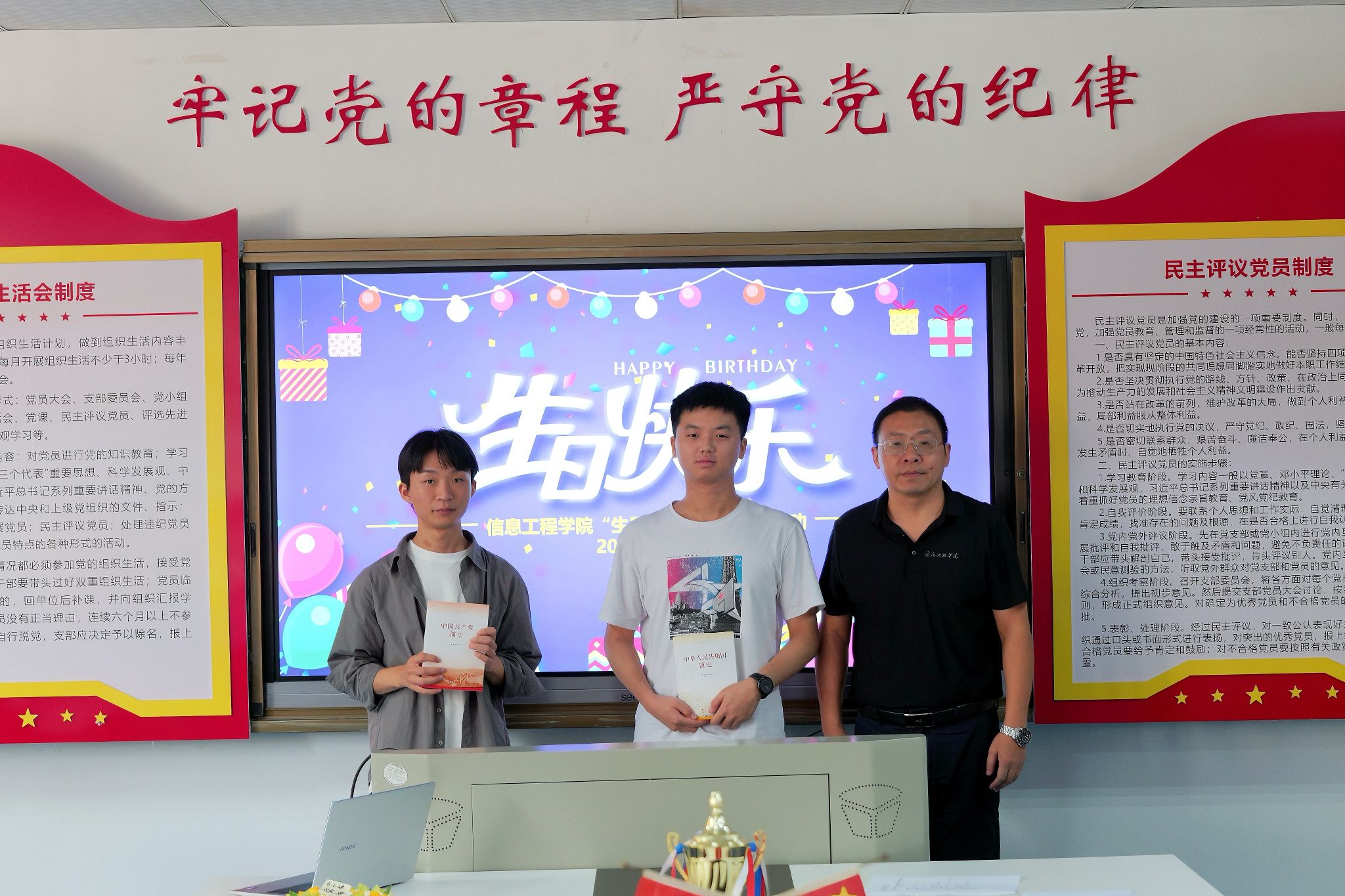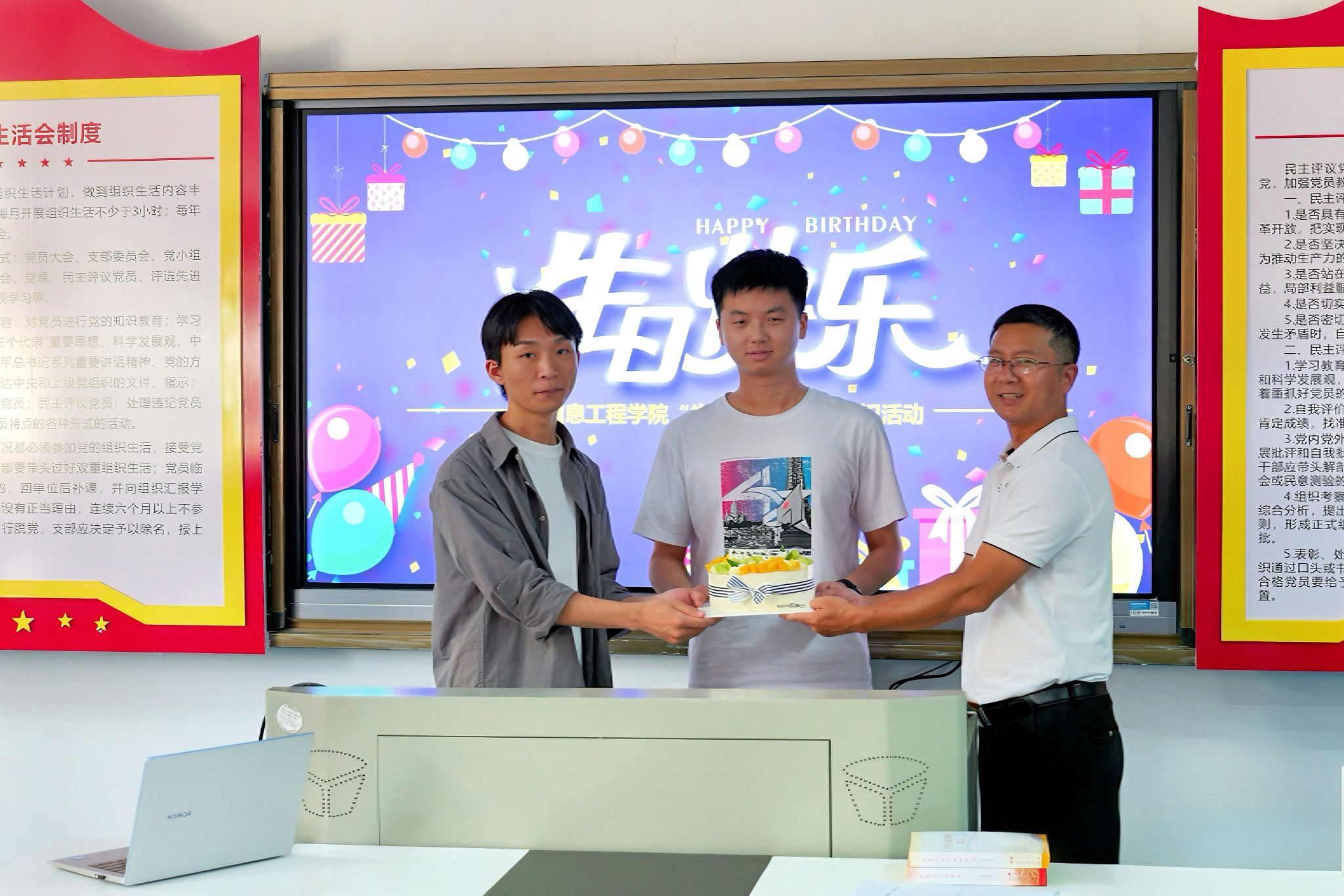 活动现场,生日歌欢快响起,yL23411永利官网登录员工工作负责人魏炳辉为两名同学送上生日蛋糕和祝福,yL23411永利官网登录党委副书记邓小鸿为他们送上书籍。他表示,生日邂逅华诞,是珍贵也是荣光,希望同学们能够深入学习了解新中国的伟大历程,汲取新时代的奋进力量,始终牢记习近平总书记对青年的殷殷嘱托,涵养坚定自信、勇毅前行的精神密码,培育团结协作、自觉自律的积极品格,与祖国同呼吸、共成长,成为“有理想、敢担当、能吃苦、肯奋斗”的新时代有为青年。