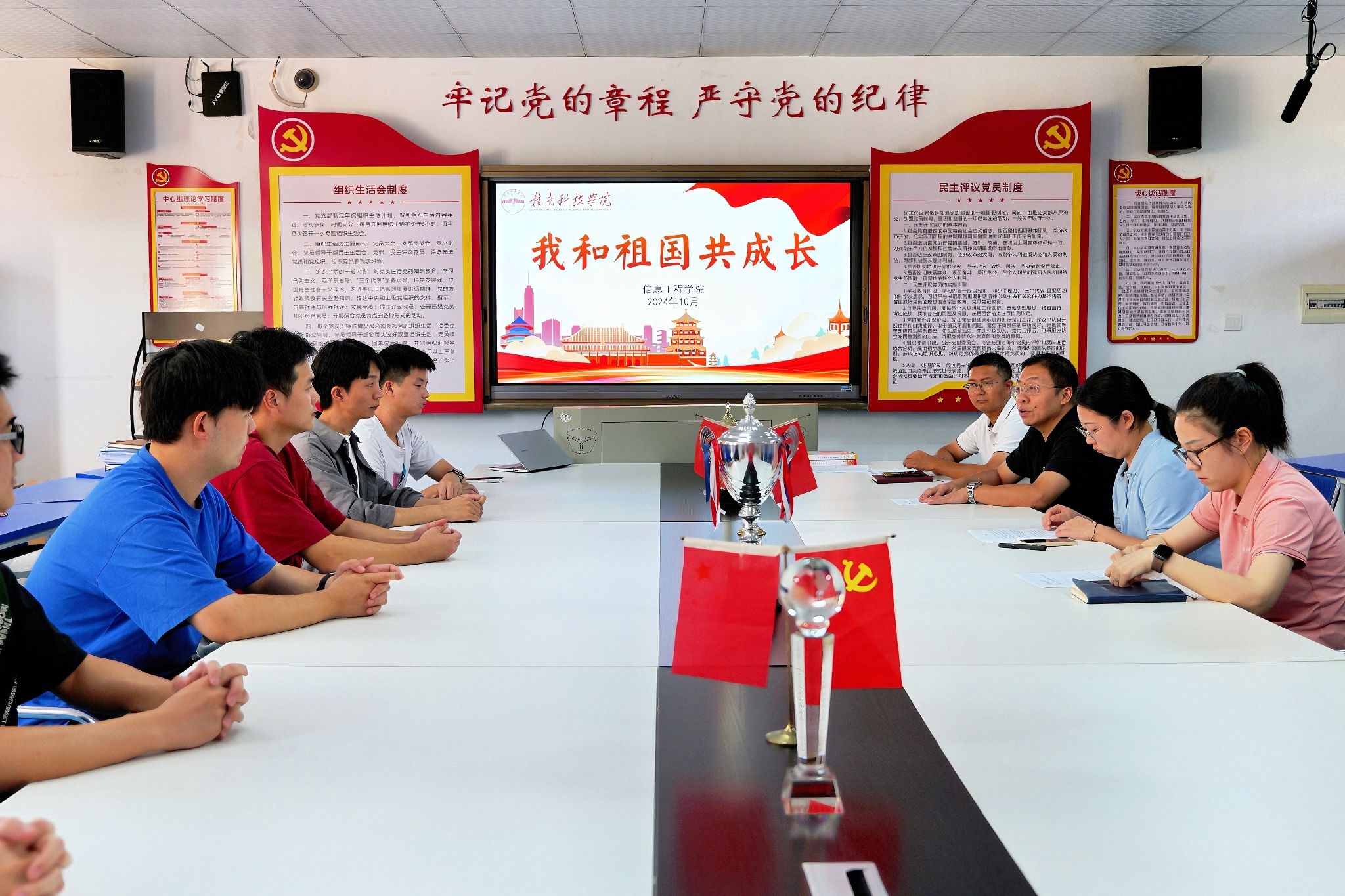 在场师生还围绕“我和祖国共成长”展开交流,从切身角度出发讲述自己心中的中国,讲述自己个人成长与国家发展的紧密联系,就如何更好地与祖国共成长、如何将自己的梦想与国家的发展相结合等问题进行了深入交流,更坚定了听党话、感党恩、跟党走的坚定信念。韦子健同学说:“华夏波澜壮阔,少年仍需向前,作为一名计算机专业的学子,我要努力学习专业知识,培养创新思维和创新能力,争做数字强国的建设者和见证者!”
