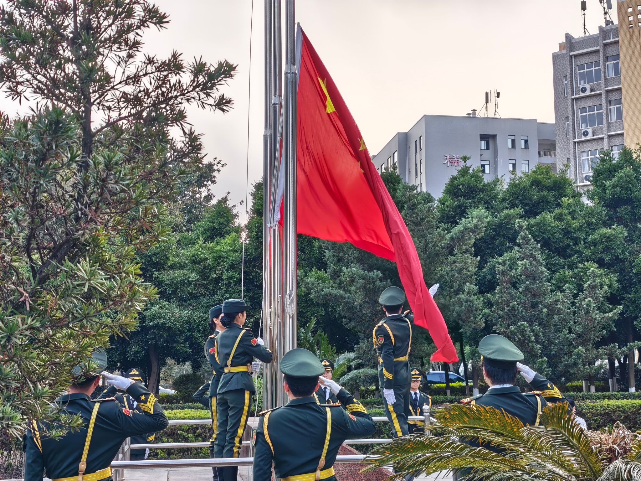 早晨7点30分,学校国旗护卫队的旗手们迈着矫健的步伐,护送着鲜艳的五星红旗入场。伴随着《义勇军进行曲》的响起,五星红旗冉冉升起,全体行注目礼、奏唱国歌,现场氛围庄严肃穆。