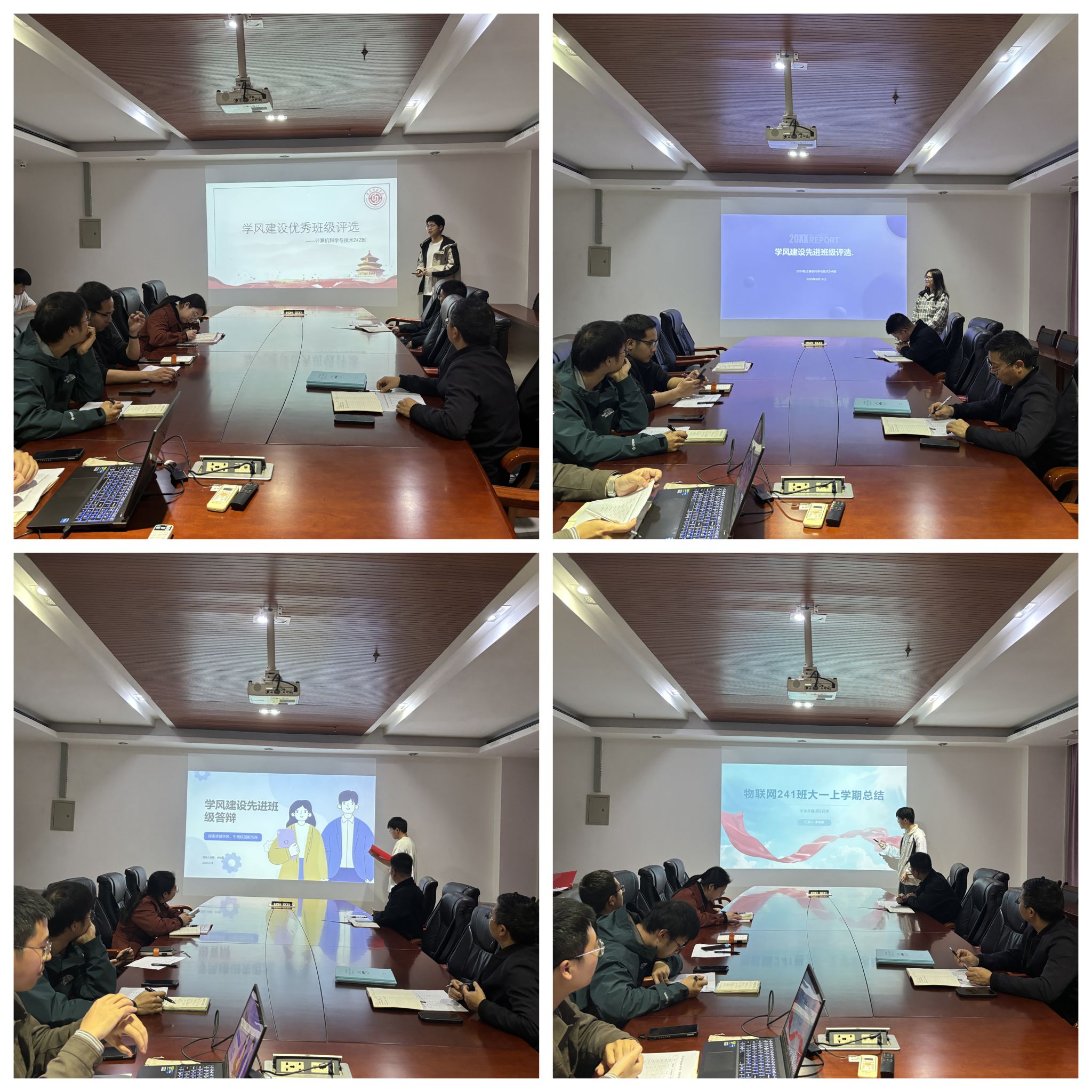 答辩会上,各班级班长依次登台,围绕组织架构、日常管理、班风学风建设、班级成果及专业特色等方面进行了全面的汇报展示,最终经过激烈的角逐和评委们的综合评议,计算机212班、计算机224班、计算机243班、物联网241班和物联网242班等五个班级凭借扎实的学风建设成果和突出的表现脱颖而出,成为yL23411永利官网登录学风建设先进班级,拟推荐至学校参评。