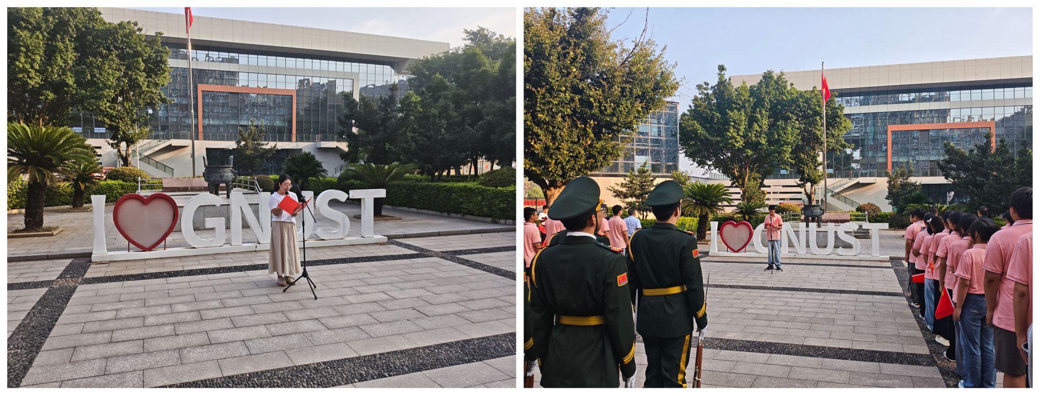 秋日晨光,微风和畅。学校国旗护卫队迈着铿锵有力的步伐,护卫五星红旗行进至旗杆下。在全体师生庄严的注视中,激昂的《义勇军进行曲》奏响,鲜艳的五星红旗冉冉升起、迎风飘扬,点燃了青年学子心中炽热的爱国之情与报国之志。