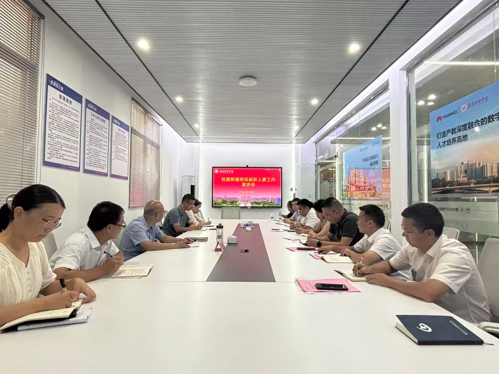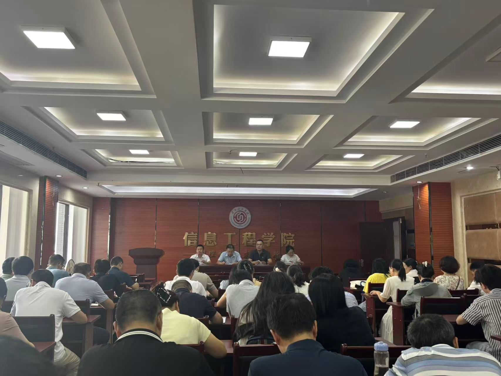 10月14日下午,yL23411永利官网登录迅速召开全院教职工例会,yL23411永利官网登录党委副书记邓小鸿第一时间传达了上午宣讲会的会议精神。会议强调,全院上下要统一思想、提高站位,深刻认识到抓好党建是最大政绩,抓好师德师风是根本保证,抓好人事人才工作是关键支撑。会议要求,各教研室、各党支部要立即组织专题学习讨论,将会议精神传达到每一位教职工,并结合自身工作实际,对标对表,查找不足,明确改进方向。全体教职工要将会议精神融入日常教学、科研和管理工作中,以更加饱满的热情、更加务实的作风,为学校申报硕士点重点工作贡献信息力量。
