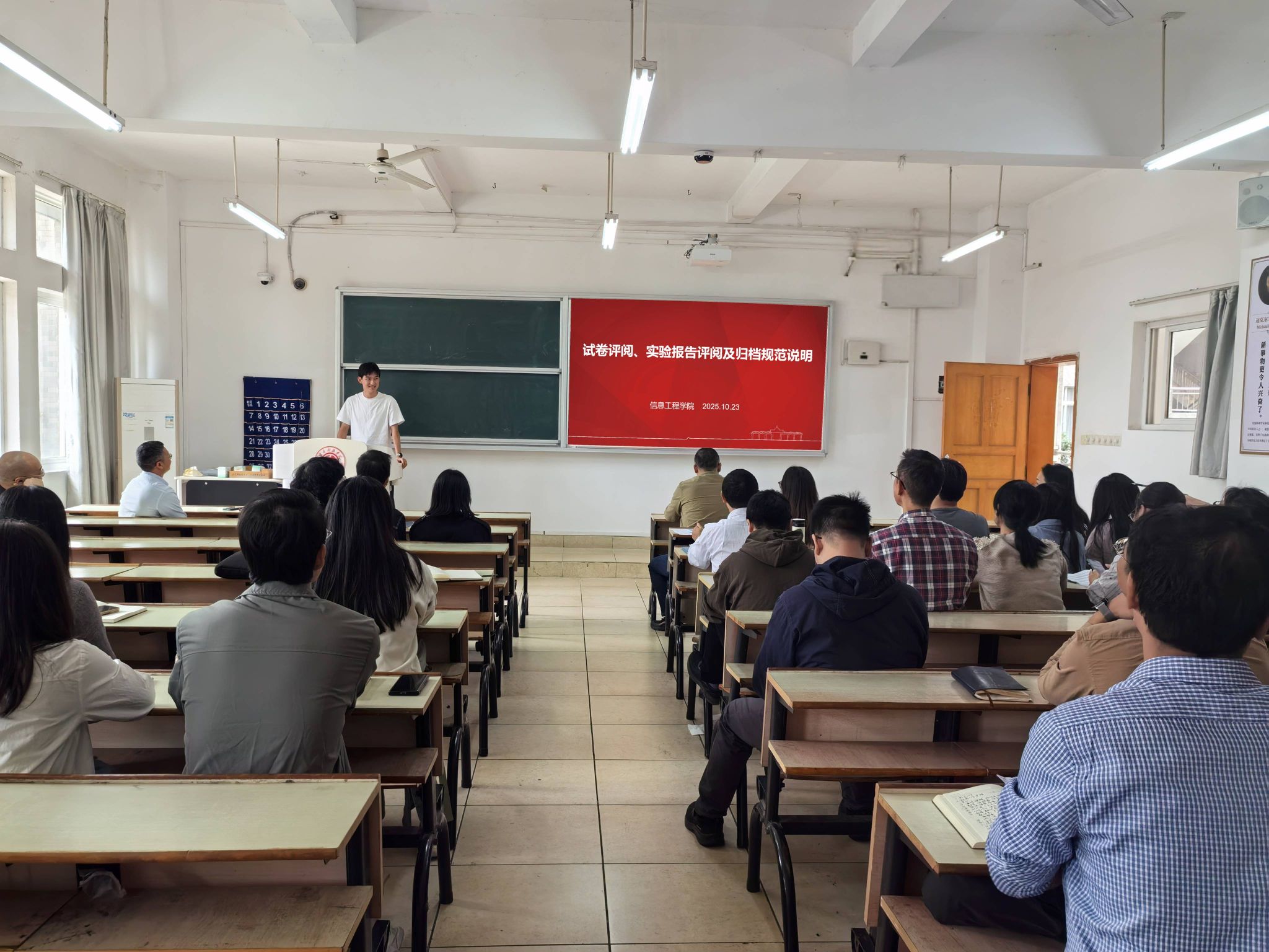 会上,李旺东围绕试卷评阅的规范性、实验报告批阅的细节要求以及教学材料的归档标准等关键环节,进行了系统、详尽的解读与实操指导。讲解内容深入浅出,紧密结合教学实际,为全体参训员工提供了清晰、明确的工作指引。