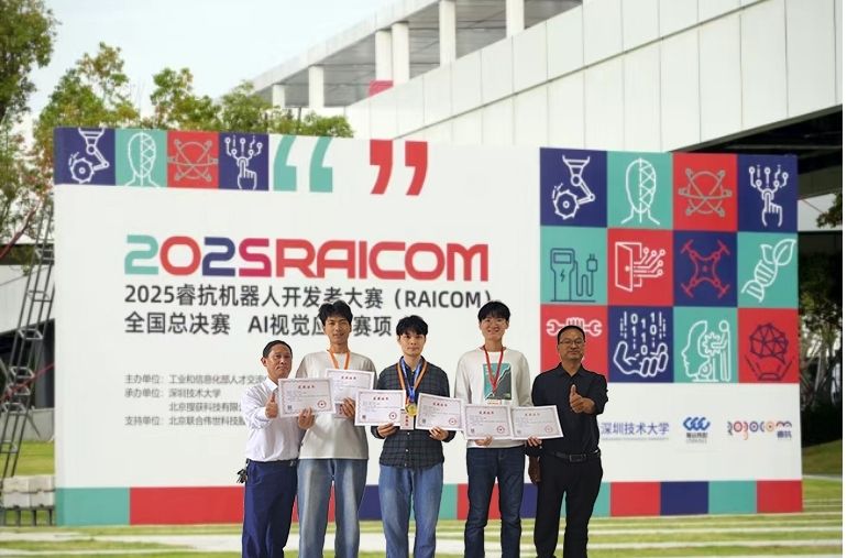 本网讯:11月25日,2025睿抗机器人开发者大赛AI视觉应用赛全国总决赛获奖证书发布。由我校物联网232班温烨、计算机221班尹乔生、电信231班陈嘉兴组成的学科竞赛团队,凭借卓越的技术实力与创新思维,其作品在激烈角逐中脱颖而出,荣获全国总决赛一等奖,为学校赢得了荣誉。