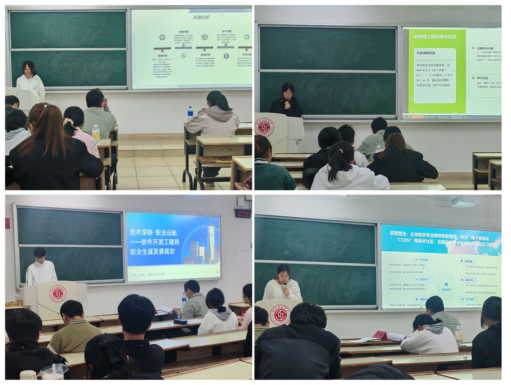经前期遴选,共有8名选手入围院级比赛。比赛分为成长赛道和就业赛道,采用“展示+答辩”的形式考察。选手们通过精心准备的PPT,从自我认知、职业认知、目标设定到实施路径,全方位展示了自己的职业规划蓝图。