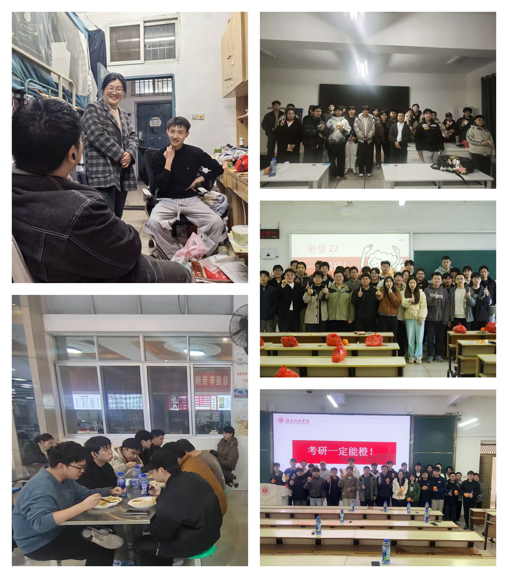 关怀不止于会议室,更延伸至学子们生活的每一个角落。在员工宿舍里,通信222班、大数据221班等班级的班主任与同学们促膝长谈,细致询问复习进度与食宿保障,一句句“注意防寒”“做好防护”的贴心话语,如春风化雨,悄然驱散了备考的焦虑。而在物联网221班、物联网222班的“暖心饺子宴”上,氤氲的热气中,师生们围坐在一起分享备考心得,家的味道温暖了疲惫的身心。电信221班、电信222班的班主任们,则亲手将寓意“一定橙”的脐橙和补充能量的零食送到每位学子手中,这份“橙”意满满的祝福,传递着最真挚的期许。除了生活上的关怀,yL23411永利官网登录更注重为学子们提供精准的学业与心理支持。多个毕业班级结合学科特点,召开考前加油会,班主任们倾囊相授冲刺技巧与心态调节方法,鼓励大家坚定信念、沉着应考。