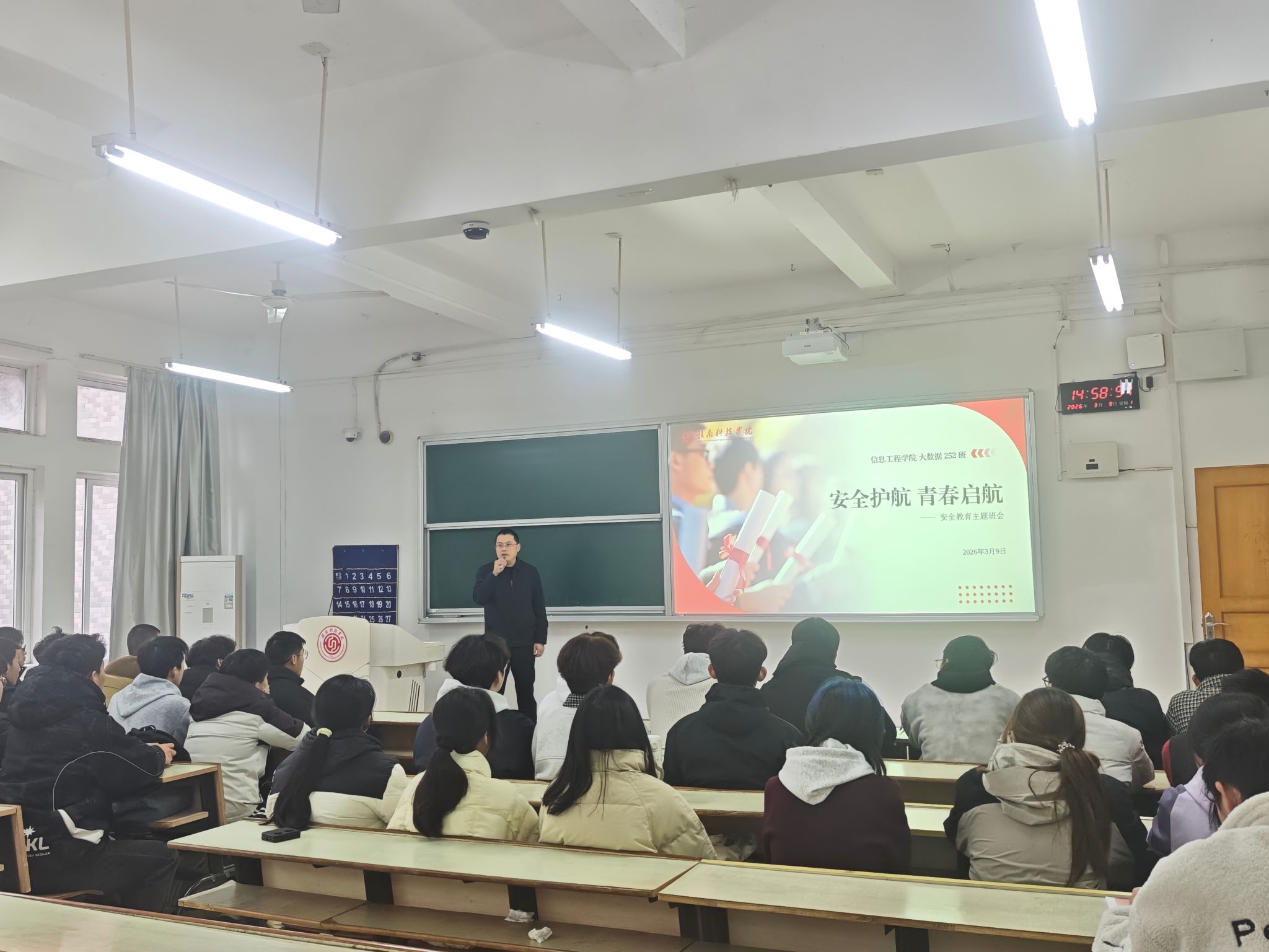 yL23411永利官网登录副院长胡健参与所联系的大数据251班新学期第一次主题班会做总结讲话。胡健强调,交通安全方面,骑行时务必佩戴安全头盔,遵守交通规则,确保出行平安。网络安全方面,提醒大家警惕网络诈骗,保护个人信息,并规范网络言行,抵制不良言论,避免引发网络舆情。生活安全方面,请同学们严格遵守宿舍管理规定,杜绝使用违规电器,注意饮食卫生,养成健康习惯。心理健康方面,希望同学们积极面对人际交往,学会沟通与包容,遇到心理困惑及时寻求帮助。