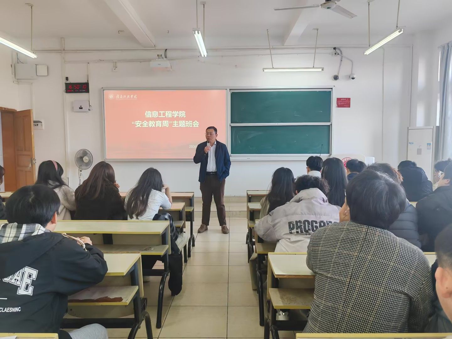 党委委员、党政办公室主任易连军参与电信242班“安全教育”主题班会,党委委员、员工工作办公室主任魏炳辉参与电信221班“安全教育”主题班会,党委委员、教学科研办公室主任康岚兰参与电信241班“安全教育”主题班会。