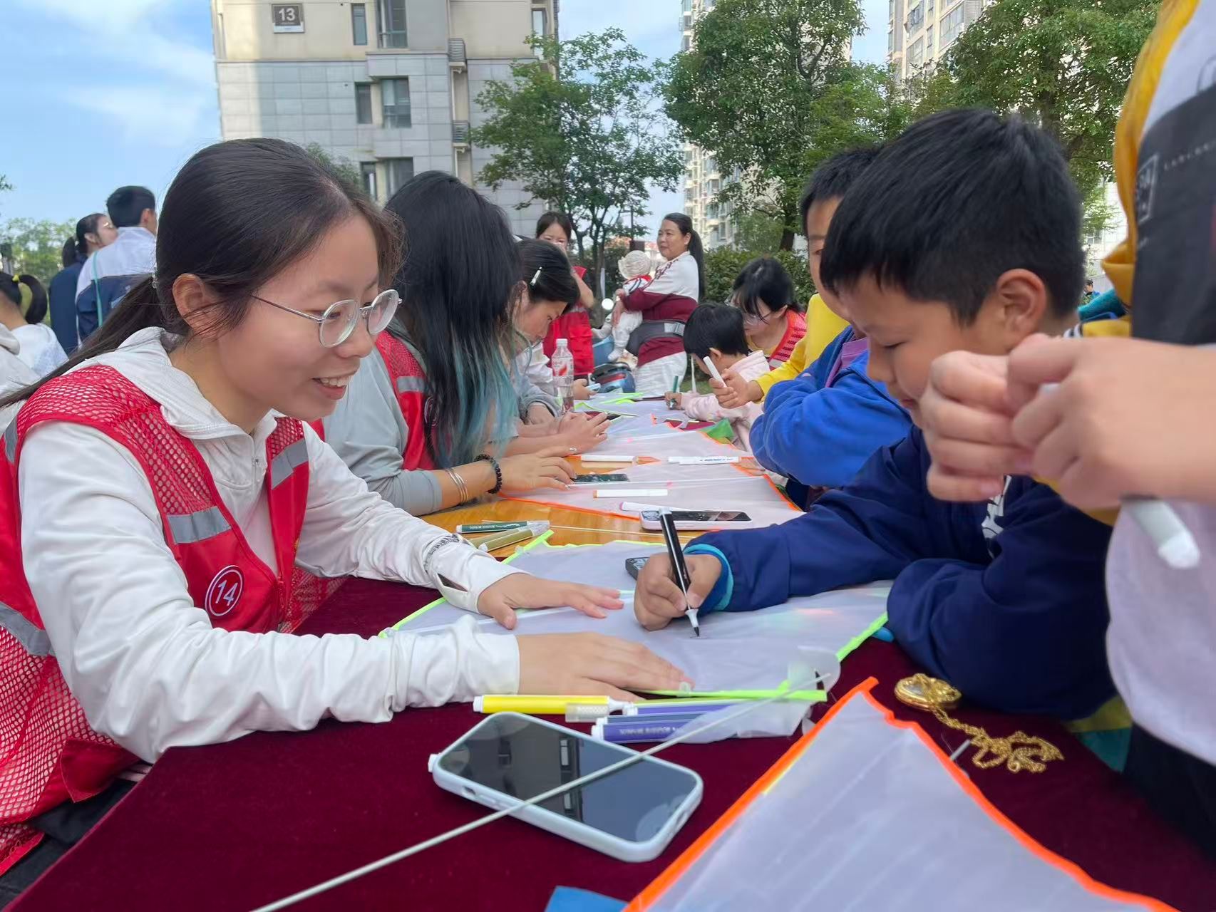 活动现场,志愿者们与孩子们结成“一对一”帮扶对子,耐心引导孩子们发挥奇思妙想,用五彩斑斓的颜料在空白风筝上绘制专属图案。憨态可掬的卡通形象、浩瀚无垠的星空宇宙、活泼可爱的动物精灵……一个个生动的元素在孩子们的笔下跃然“筝”上,搭配“天天开心”“平安喜乐”等稚嫩却真挚的祝福语,尽显童真童趣与对美好生活的期盼。