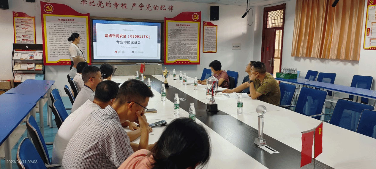 会上,专业申报负责老师屈雯从申报理由、基本情况、办学思路、培养目标、课程体系五个方面对网络空间安全新专业的申报情况进行了汇报。各评议专家就网络空间安全专业申报问题进行了深入细致的研究讨论,提出了宝贵的意见和建议。