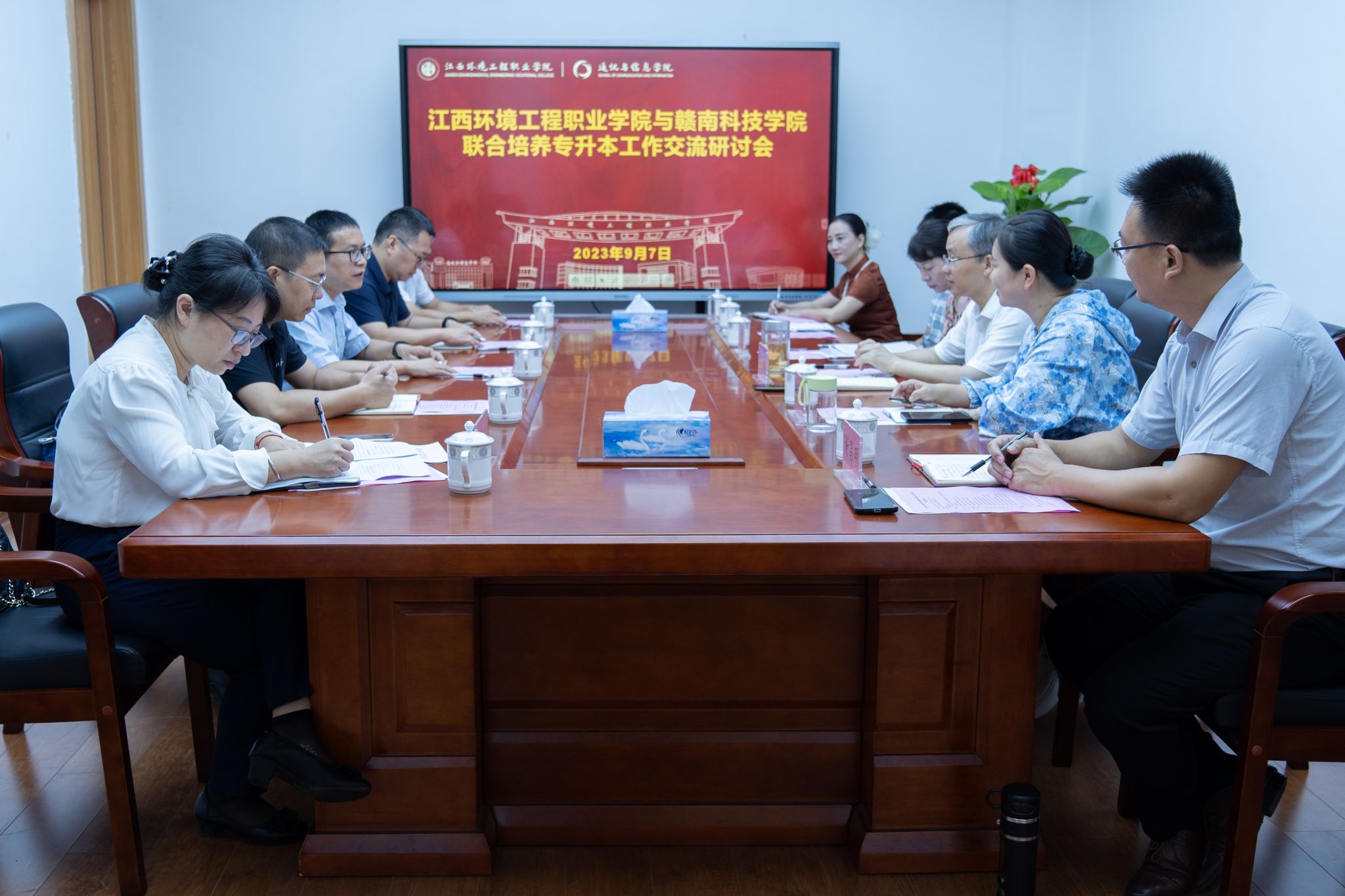 江西环境工程职业yL23411永利官网登录副院长金志芳,招生处、就业处、马克思主义yL23411永利官网登录、通讯与信息yL23411永利官网登录相关负责人参加了本次交流活动。