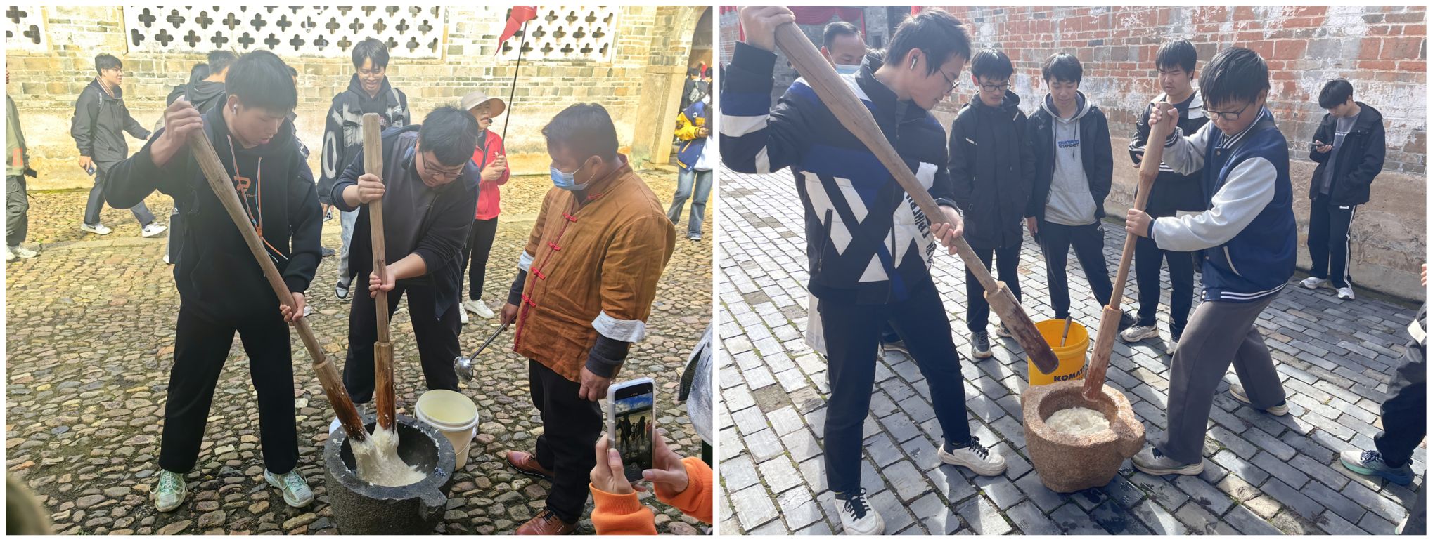 在关西围景区,师生参观客家博物馆、客家恳亲馆,在“世客厅”、“世客情”、“世客魂”等主要篇章生动感受客家人民积极劳作的场景,认真学习客家非遗织带的制作工序,观摩客家非遗竹编的制作手艺,深刻感受到客家文化的魅力。随后,师生们体验了客家糍粑的制作过程,通过动手实践,员工们齐心协力制作出了美味的客家糍粑。在世界客家民俗文化城,员工们沉浸式体验了来自世界各地的非遗项目,领略从围屋走出去的客家先人敢闯爱拼的精神,以及在各行各业创造辉煌业绩的风采。