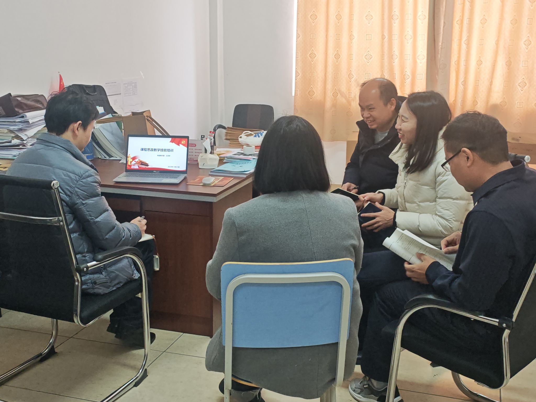 培训中,员工们积极参与讨论,分享各自在教学中的实践经验,以及在融入思政教育过程中遇到的挑战与解决方案。这不仅让员工们开阔了视野,也增强了彼此之间的互动与合作,为今后更好地推进课程思政工作奠定了良好的基础。