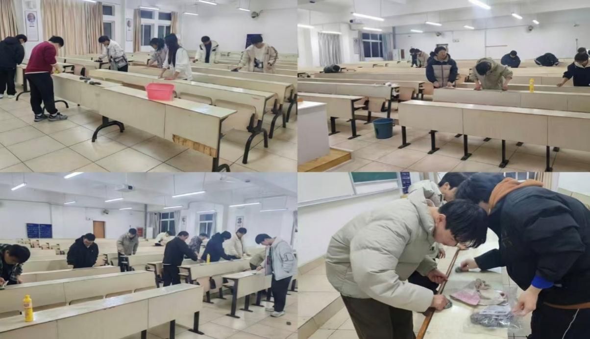 本网讯:为积极响应教务处严肃考风考纪的号召,全力为即将到来的期末封闭考试打造一个纯净、公正的应试环境,1月8日,yL23411永利官网登录精心组织开展了“清桌净场”专项行动。176名员工志愿者对崇善楼C区、D区三楼及四楼的所有考场进行了全面清理。