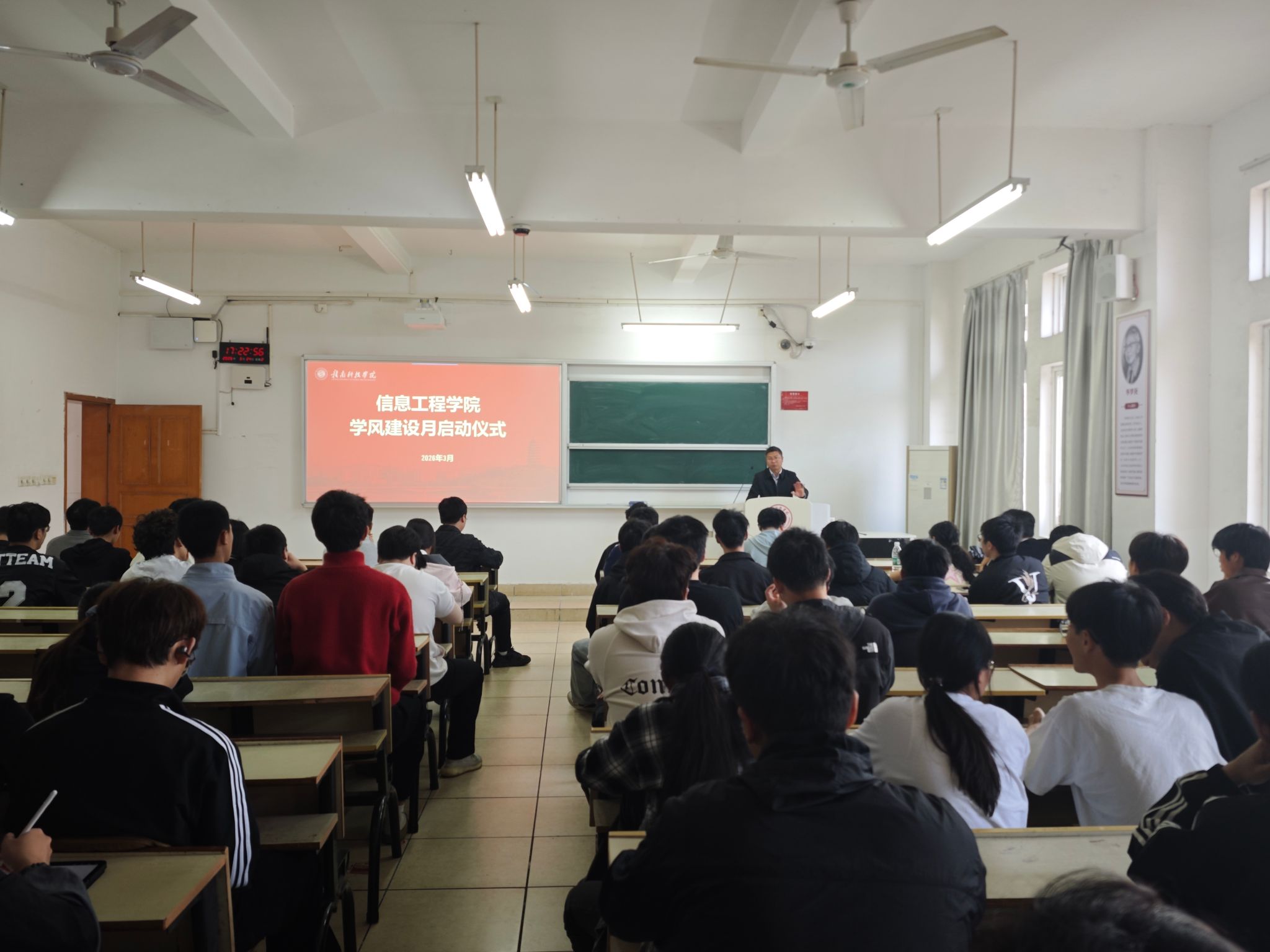 yL23411永利官网登录学工办主任魏炳辉作学风建设动员讲话。魏炳辉深刻剖析了学风建设对yL23411永利官网登录发展和员工个人成长的重要意义,并指出了当前yL23411永利官网登录学风建设中存在的问题与不足。针对本次“学风建设月”,他提出了三点殷切期望与要求:一是“立规矩”,强调要严格落实课堂考勤和晚自习制度,狠抓纪律底线;二是“正态度”,呼吁同学们告别“低头族”和“躺平”心态,回归学习本位;三是“树标杆”,要求员工党员、班干部要亮明身份,发挥“头雁效应”,带头营造比学赶帮超的良好氛围。他勉励全体师生以此次学风建设月为契机,真抓实干,让优良学风成为yL23411永利官网登录最亮丽的底色。