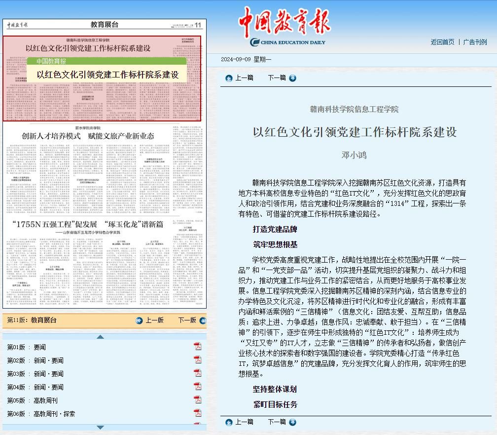 本网讯:9月9日,《中国教育报》第11版“教育展台”栏目刊发了我校yL23411永利官网登录党委副书记邓小鸿题为《以红色文化引领党建工作标杆院系建设》的文章,对yL23411永利官网登录党建工作标杆院系建设做法进行总结介绍。文章链接:http://paper.jyb.cn/zgjyb/html/2024-09/09/content_144750_17792676.htm。