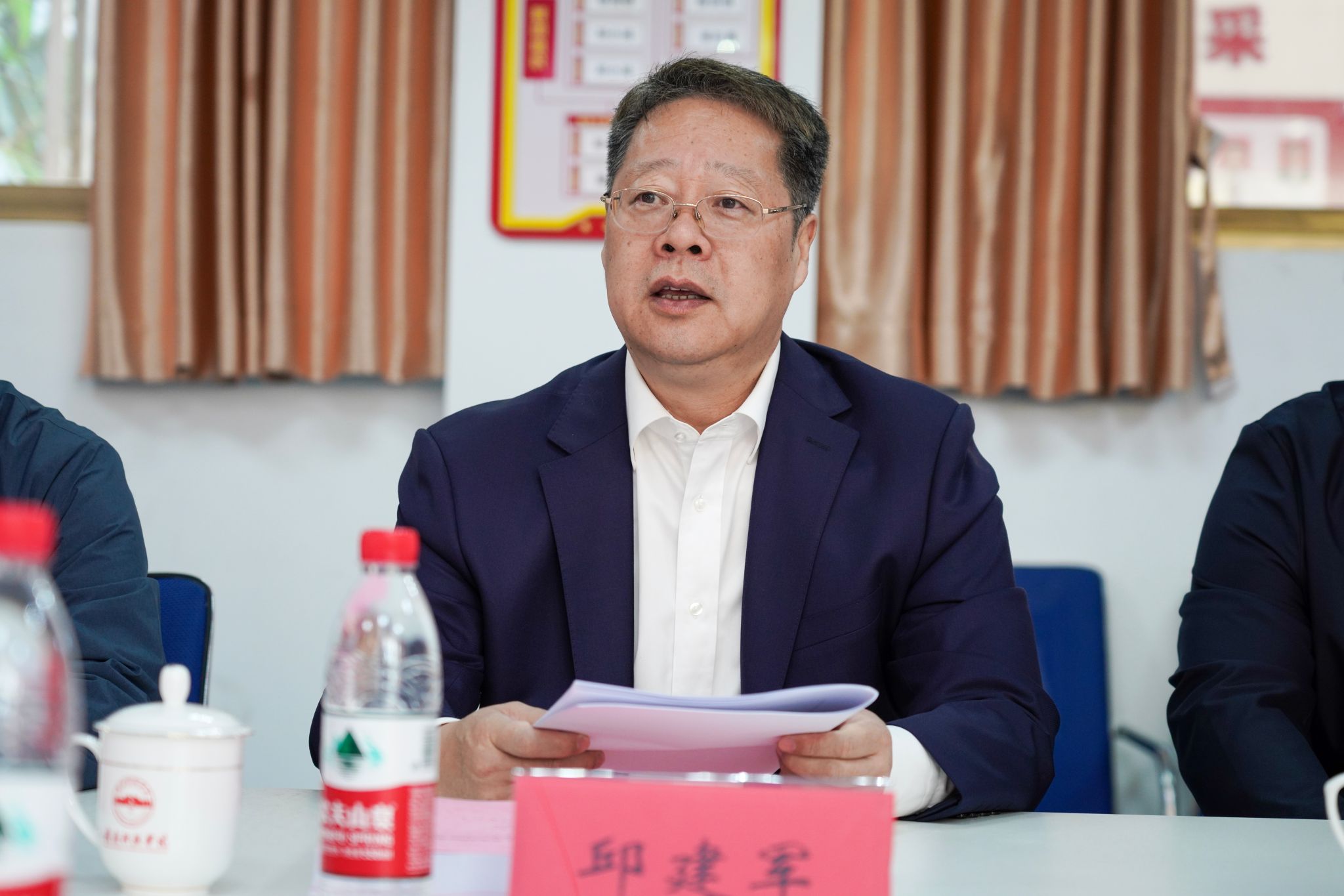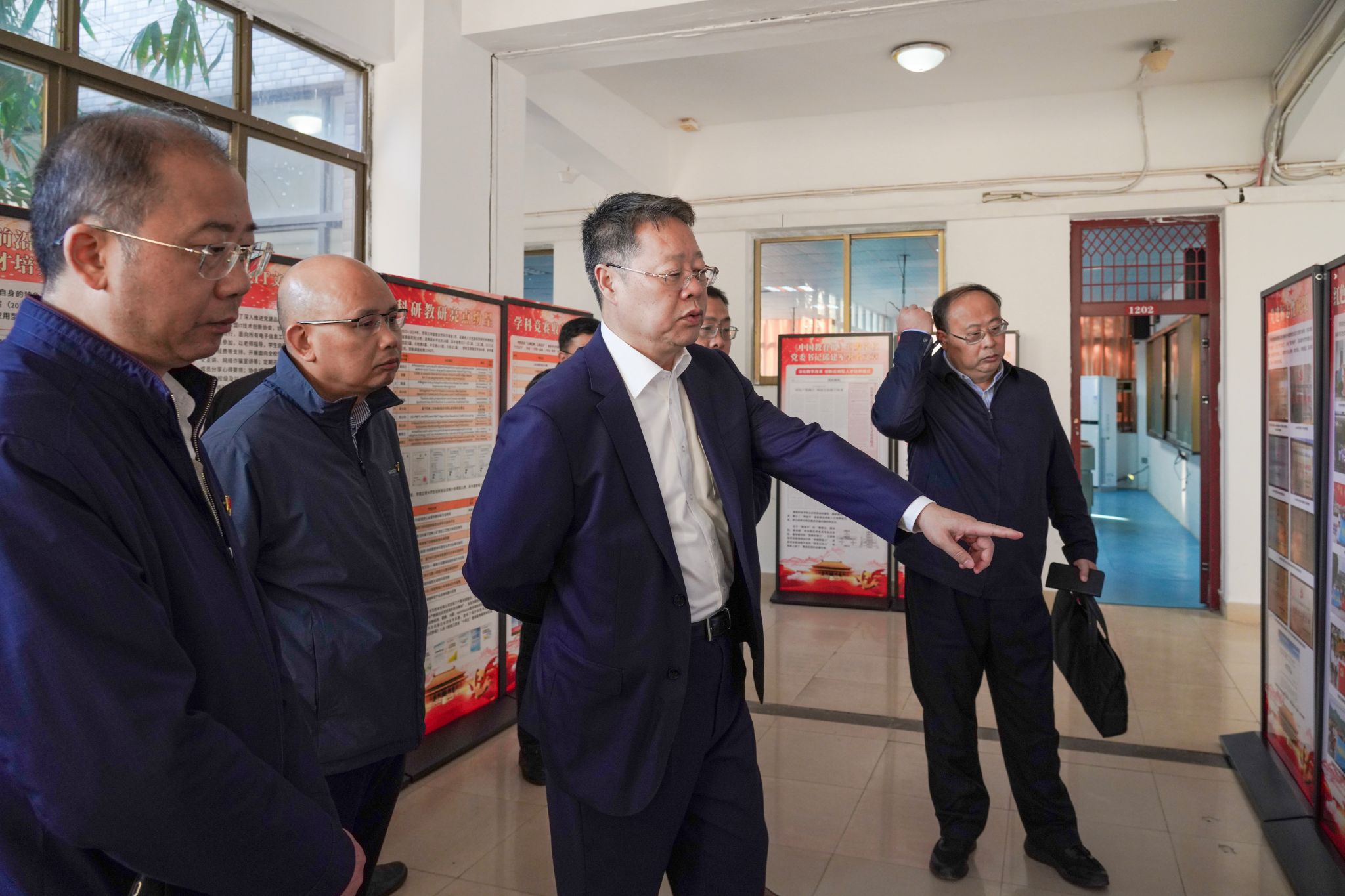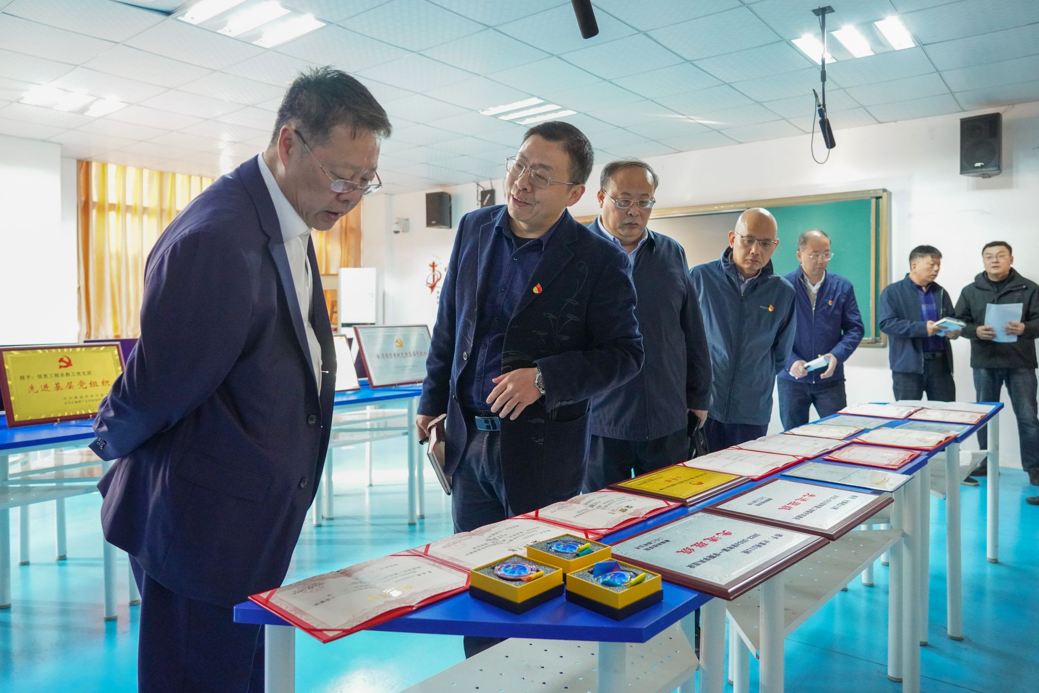 邱建军一行实地查看了yL23411永利官网登录党建长廊成果展、荣誉展、党员活动室等党建工作建设情况。yL23411永利官网登录党委副书记邓小鸿就yL23411永利官网登录围绕“全省党建工作标杆院系”建设所开展的各项工作进行了详细汇报,从党建工作机制完善、党组织建设成效、党建引领学科发展与人才培养、党建工作创新举措等多个方面,系统阐述了yL23411永利官网登录在标杆院系建设过程中的积极探索与实践成果。