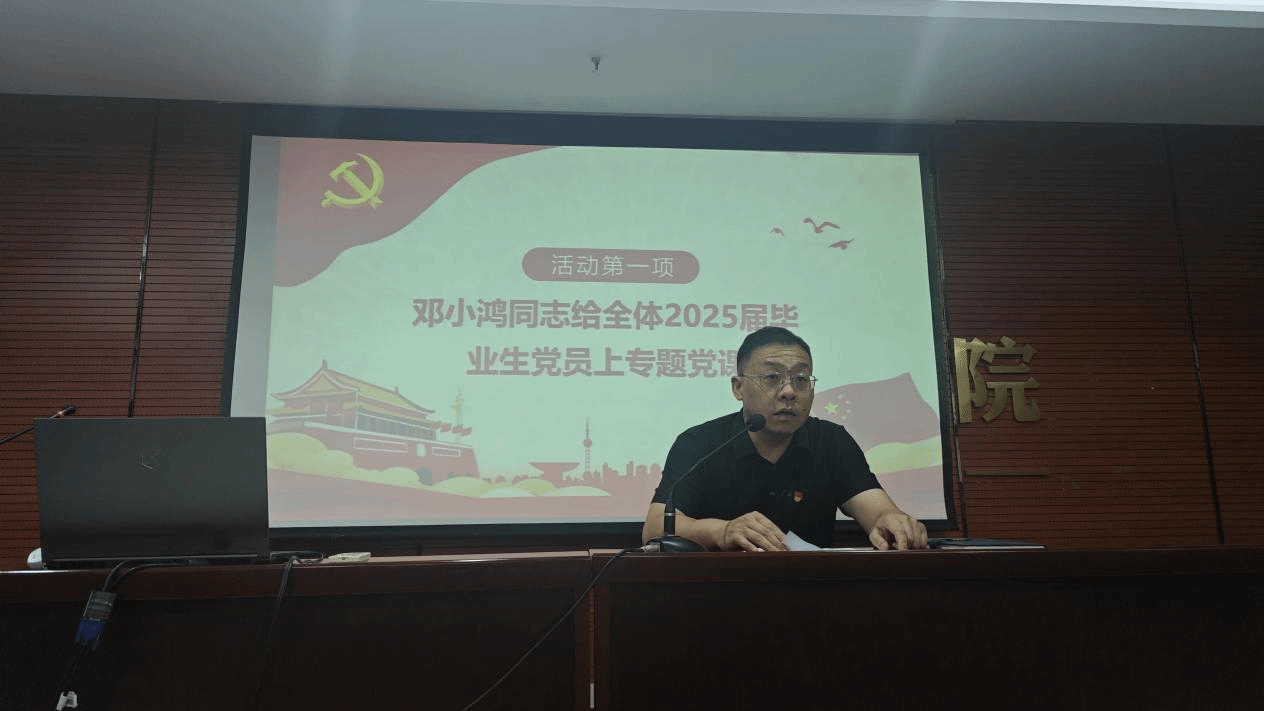 邓小鸿同志为全体2025届毕业生党员上专题党课。党课中,邓小鸿同志围绕青年党员的身份使命、文明离校教育、党组织关系转接以及深入贯彻中央八项规定精神学习教育等方面展开,对毕业生党员提出了明确要求与殷切期望:希望他们在今后的学习和工作中,传承“三信精神”,始终牢记党员身份,践行党的宗旨,发挥先锋模范作用,以坚定的信念、扎实的作风、过硬的本领,为实现中华民族伟大复兴的中国梦贡献自己的力量!