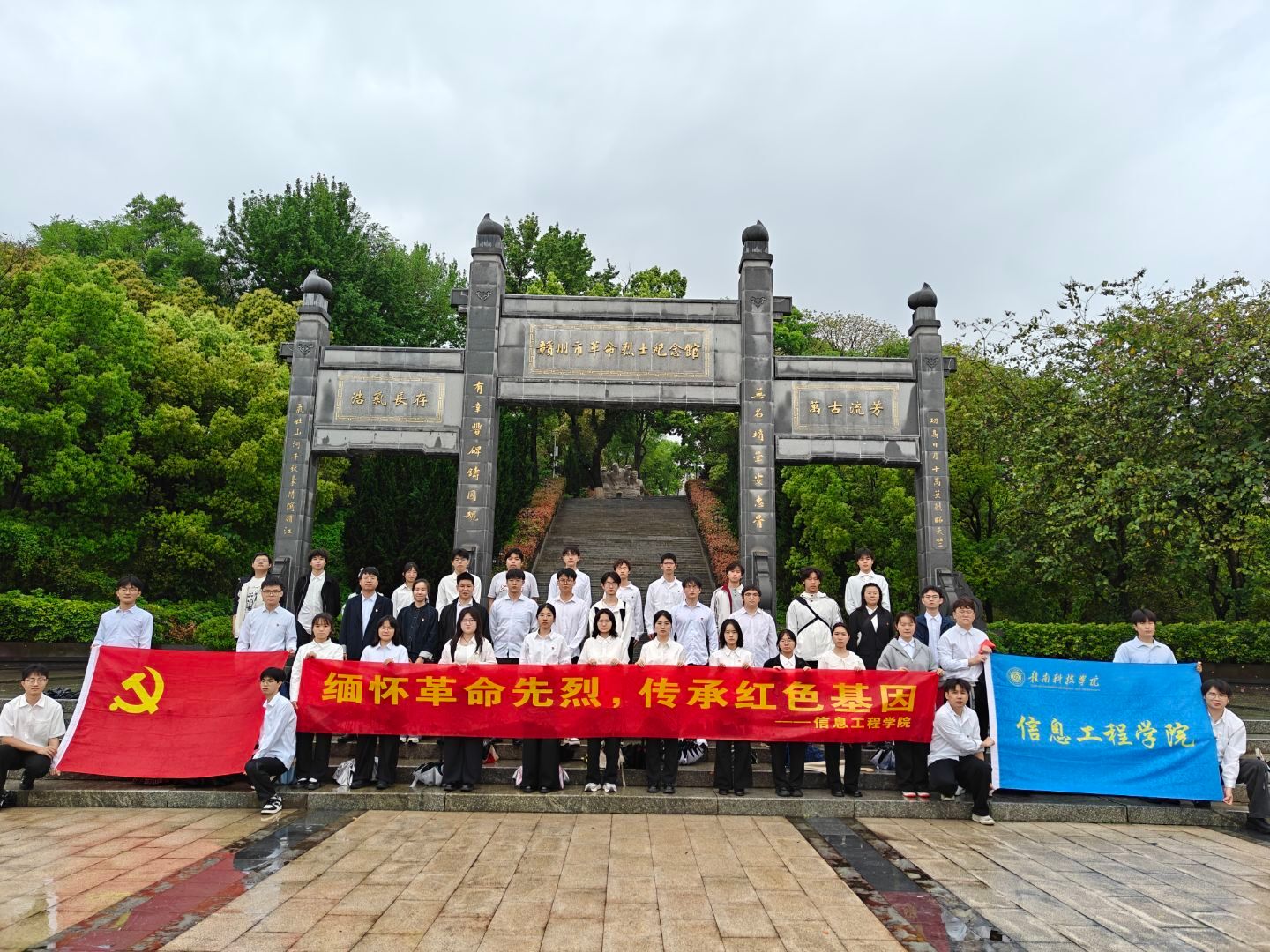 本网讯:清明寄哀思,英魂永铭记。为深切缅怀革命先烈的丰功伟绩,弘扬爱国主义精神,引导广大青年学子赓续红色血脉、筑牢信仰之基,4月3日下午,yL23411永利官网登录本科生第二党支部联合院团委员工会,组织员工党员、共青团员代表赴赣州市革命烈士纪念馆,开展“缅怀革命先烈,传承红色基因”主题祭扫活动。