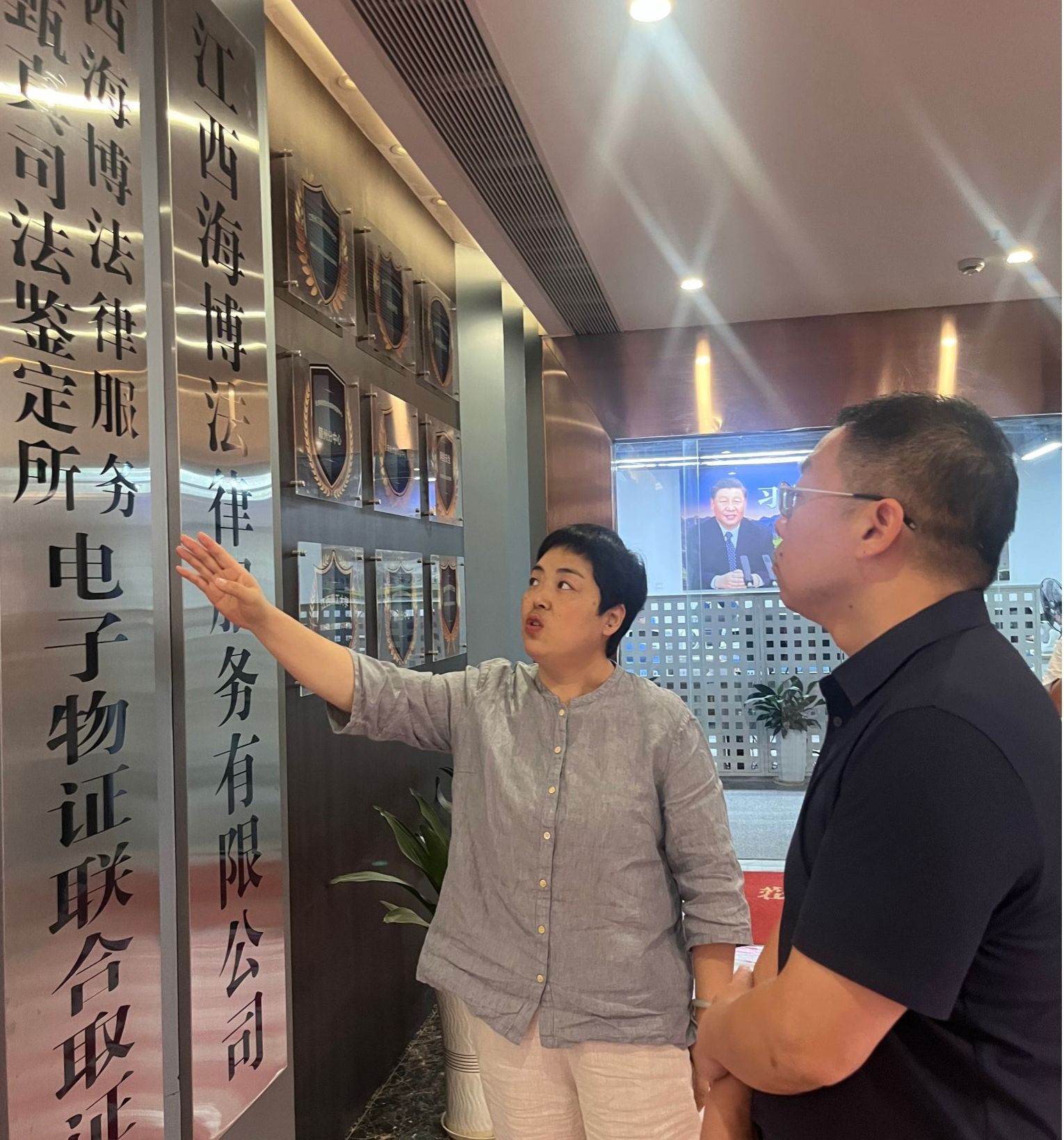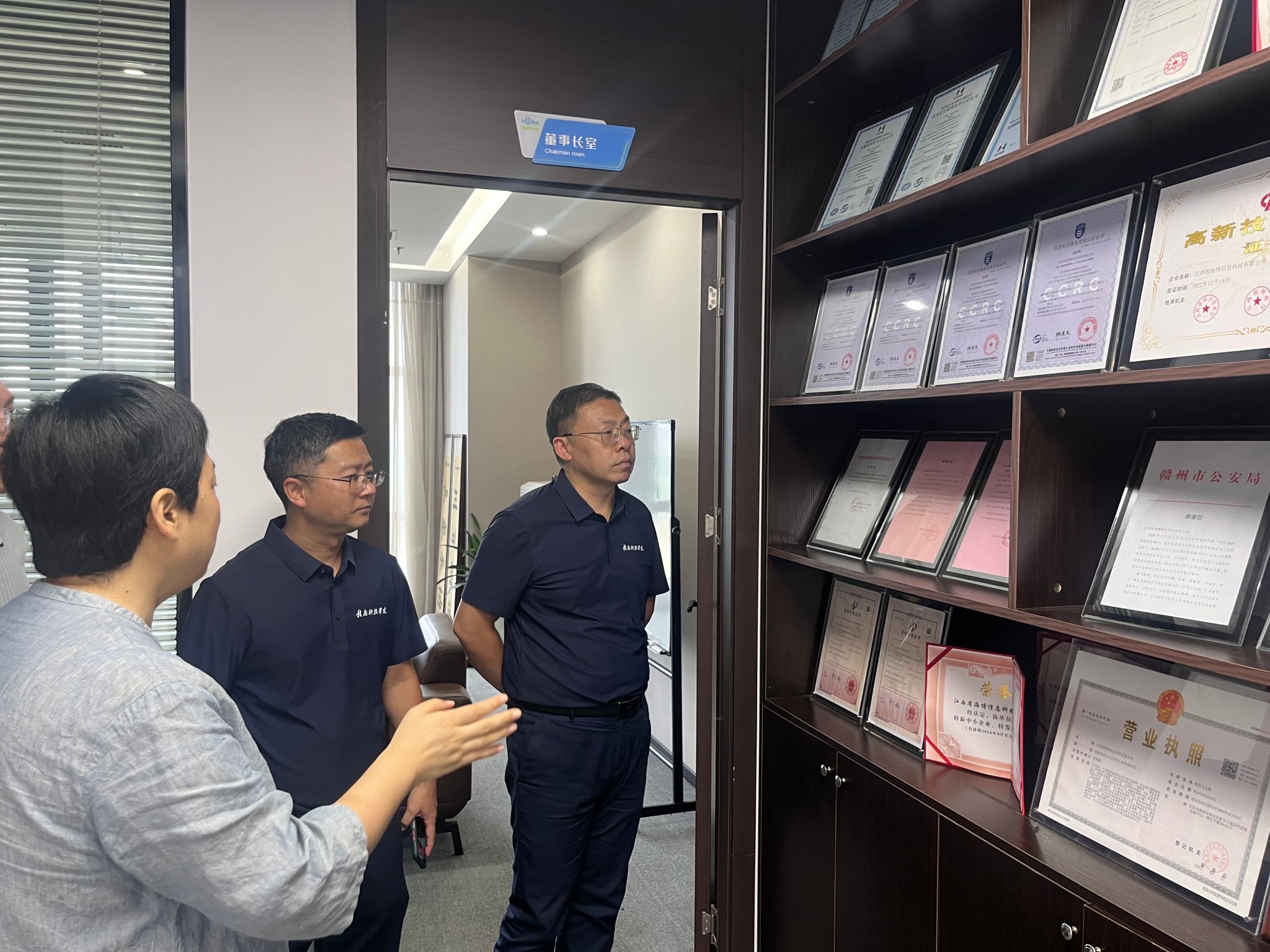 在公司相关负责人的陪同下,邓小鸿一行参观了海博信息科技有限公司的办公环境及业务展示区,详细了解了企业的发展历程、主营业务、技术成果及人才需求情况。参观过程中,双方就信息工程专业员工的培养方向、实习实践平台建设及就业渠道拓展等方面进行了深入交流。
